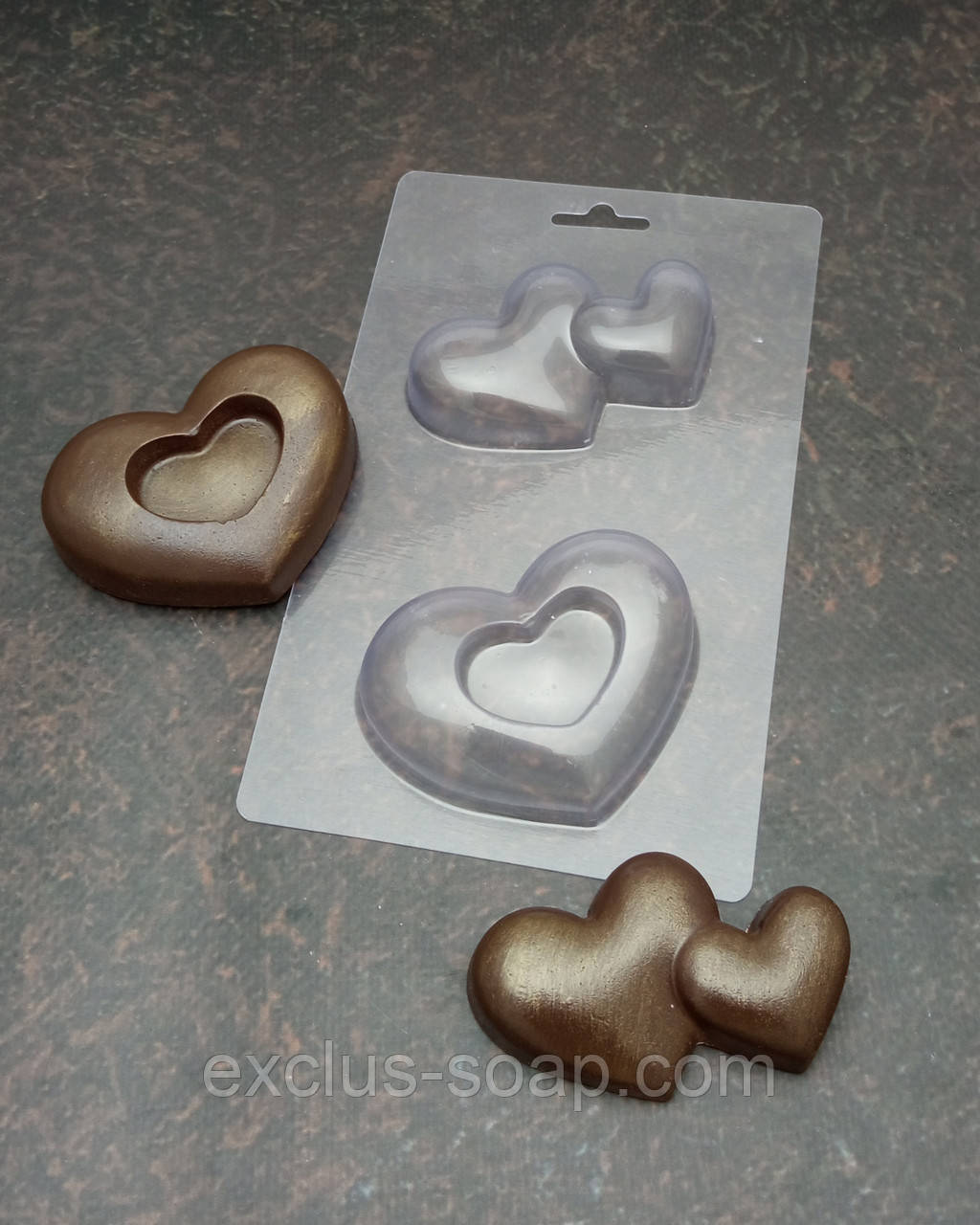 Пластикова форма для виготовлення мила ручної роботи-пара сердечок!
